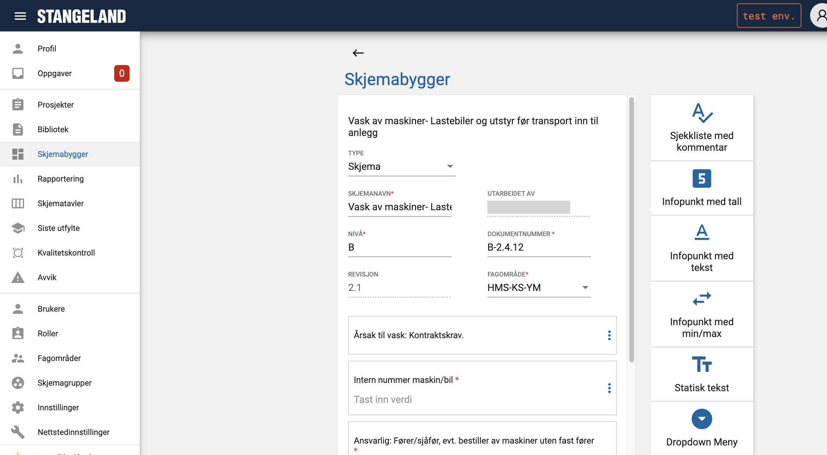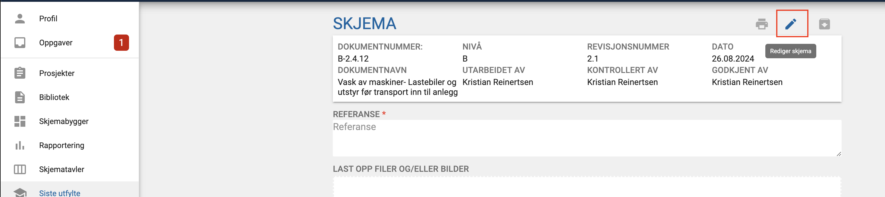 Denne veiledningen viser hvordan du redigerer en eksisterende skjemamal og oppretter en ny revisjon i QA-systemet. Når du gjør endringer i en skjemamal, opprettes det alltid en ny versjon, slik at eksisterende data bevares.