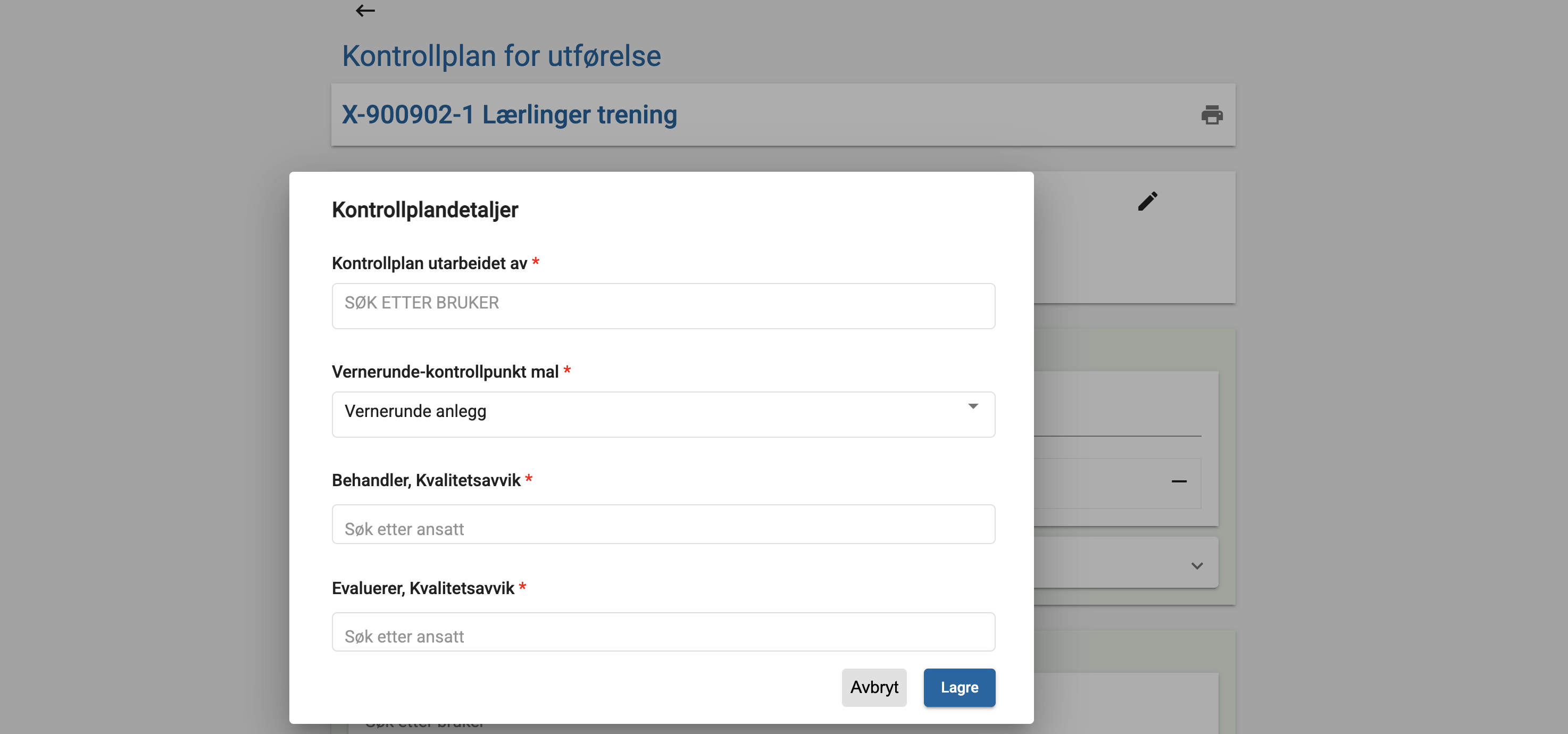 Behandler og evaluerer er påkrevd for å kunne bruke kvalitetsavvik