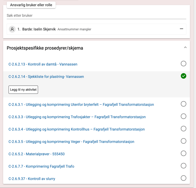 Du kan legge til aktiviteter per skjemamal for å beskrive bruksområde i prosjektet.